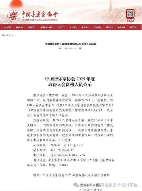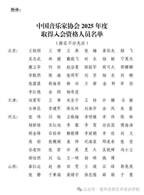 中国音乐家协会2025年度取得入会资格人员公示文件