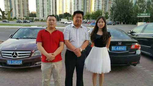 校长杨育林与爱徒、王绮莹启蒙老师、大庆卓韵吉他培训学校校长张向龙和王绮莹合影留念